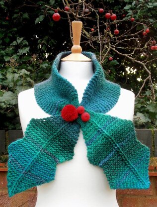 I designed and 3/4 knitted this holly scarf on a Saturday afternoon as part of Jenny Wren's Yarn's Festive Gathering while also helping customers sort out their knitting problems.