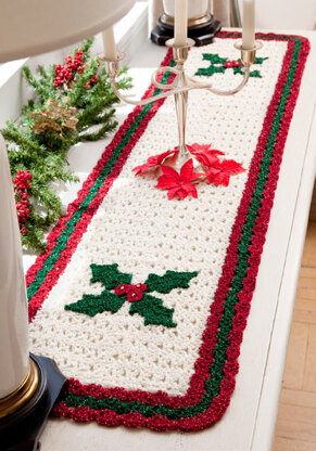 Holly Table Runner in Red Heart Holiday - LW2622 - Downloadable PDF