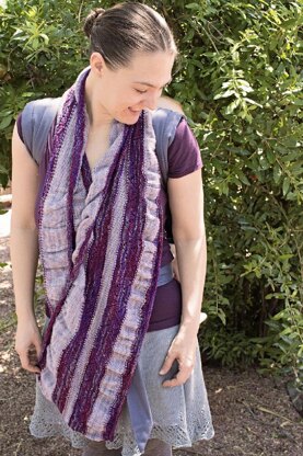 Sizes S (M, L, XL)/shown in size M Finished Dimensions: Width: 38 (40, 44, 48)”/96.5 (101.5, 112.0, 122.0) cm Height: 18”/45.5 cm for all sizes Gauge: 7 sts = 1”/2.5 cm in St st Yarn: The Fiber Seed, Sprout, 90% Superwash USA Merino Wool 10% Nylon, 480 yds/140 g 1 (1, 2, 2) skeins Hollyhock (SS205), 1 (1, 2, 2) skeins Silver (S014) Needles: US 5/3.75 mm, 32”/81.5 cm circular Supplies: Tapestry needle,