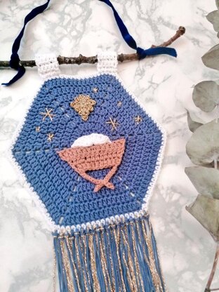 It’s beginner friendly too – just one big hexagon embellished with stars and a manger that you’ll sew on after. You can use any DK yarn for this make, and a glittery 4ply for the gold accents if you wish. It's written in UK terms in English only.