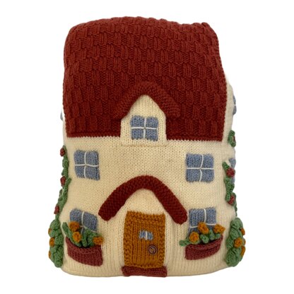 Use knits and purls to create a textured sensory 3D house cushion, with ribbed tile roof and knitted bobble bushes. This is a super pattern to practice your mattress stitch skills. Designed by Amanda Berry @fluffandfuzz, the house is knit in acrylic DK yarns on single pointed needles (not in the round). The house is 37cm tall x 25cm wide x 9cm depth. For confident beginners and above, other techniques used include casting on and off, knits, purls, increases and decreases, and seaming to finish.