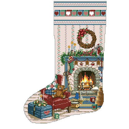 By Sandy Orton. Home For Christmas is another of our coveted Heirloom Stockings designed by Sandy Orton. This favorite shows a Victorian style room with cozy fireplace crackling away with dГ©cor, candles, wreaths, toys and other holiday cheer filling the inviting room. Personalize this classic heirloom for a favorite family member.\n