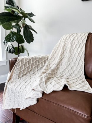 Sized for a baby or regular throw blanket and knit in light worsted yarn.