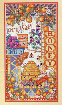 By Nancy Rossi. Taste the delicious honey from the orange blossoms. Honey bees frolic in this intricate design by Nancy Rossi. Honey bees in a natural beehive or in a wooden hutch. It all tastes delicious.