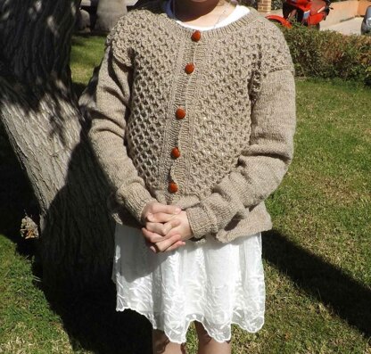 This is a very feminine girls cardigan knitted from the bottom edge and up.