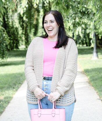 The Honeybee Cardigan is a size-inclusive, easy crochet cardigan pattern. The cardigan primarily uses half double crochet stitches, and has an oversized fit with 2-4 inches of positive ease. Pattern has been graded using CYC Standard Measurements. Sizes include XS (S, M, L, XL) (2X, 3X, 4X, 5X) to fit bust sizes 32 (36, 40, 44, 48) (52, 56, 60, 64) in. You will need: 8 (9, 10, 11, 13) (15, 16, 18, 19) balls of WeCrochet Galileo in Apollo for sizes XS (S, M, L, XL) (2X, 3X, 4X, 5X) or 970 (1160, 1265, 1440, 1620) (1875, 2030, 2315, 2410) yards of similar Sport weight yarn that matches gauge. *Model is wearing the cardigan with 2 inches of positive ease.