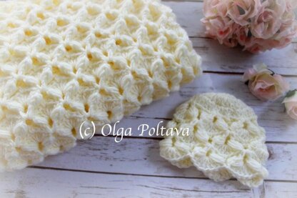 The size of the blanket is 46 by 38 inches, but it can be easily adjusted to any other size (the multiple for the pattern is included). The hat pattern comes in three sizes: newborn, 0-6 months, and 6-12 months. Finished measurements: newborn (about 12 inches in circumference and 5 inches in height) , 0-6 months (about 14 inches in circumference and 6 inches in height), 6-12 months (about 14 inches in circumference and 7 inches in height). Both items are made with worsted weight 100% acrylic yarn and size H/8 (5 mm) hook. Skill level is advanced beginner. The amount of yarn needed is about 2000 yards. I used Pound of Love yarn by Lion Brand, but other similar yarns with work too. Each of these patterns are also available in my shop for sale separately, but a bundle purchase is offered at a lower price. The patterns are written in English, using the US crochet terminology.