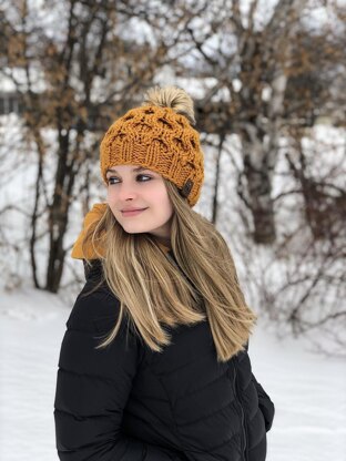 This is a PDF knit pattern to make a honeycomb cable hat in 3 sizes in 2 different yarn weights (#5 chunky or #6 super bulky).