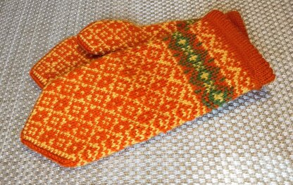 Yarn amounts needed, approx.: 75 g main color, size 4; 50 g of secondary, size 4; 5 g of accent color, size 4