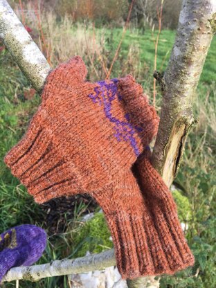 This pattern is the Honeycomb Fingerless Mitts, a cute honeycomb colourwork detail across the knuckles on a pair of fingerless mitts.