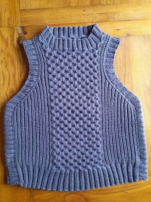 Aran vest with honeycomb cable panel and brioche rib, size 40" chest. Knitted on 4mm needles to give a firm, close stitch definition