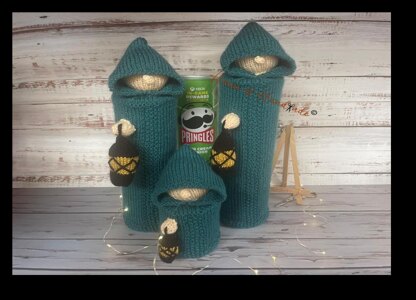 PDF instant download Hooded Cloak Pringles Tub Covers Knitting Pattern for 185g, 165g & 40g tubs.