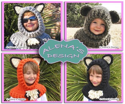 This seamless Hooded Cowl will keep you warm on those really cold days! Also, the crocheted ears and the artificial decorative fur gives this Cowl an adorable and very attractive look. You can make a Grey Wolf, Red Fox, Brown Bear, or a Black Cat. The back of the Hood is round. Begin work at center back of Hood on rows, then continue working around the Collar. Includes five sizes: