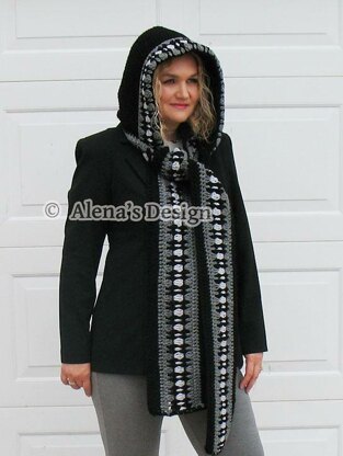 This Crochet Hooded Scarf will keep you warm on those really cold days! A myriad of contrasting color patterns make this scarf blend well with the season, and match any winter outfit. The back of the Hood is also round. Includes PATTERNS for the Hooded Scarf in two sizes: