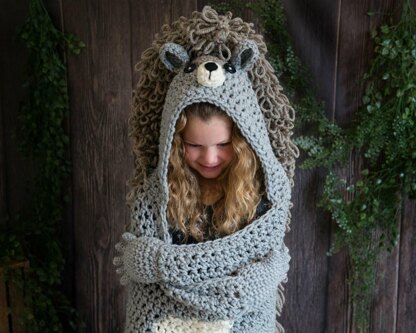 Wrap yourself in this cozy Hooded Squirrel Blanket. Perfect for cuddling, play and display. Our squirrel blanket features a fluffy loop stitch tail, paw mittens with fingers and detailed hood. When not in use the blanket folds into a cute little pillow. Videos available for loop stitch, extended single crochet and the base hood.