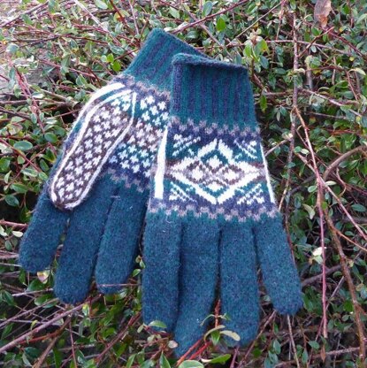 The cuffs, thumbs and fingers are all worked with 2 colours which makes them especially warm.