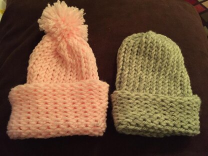 This project uses less than one skein of Vanna's Choice yarn. Pom-pom is optional. This makes a great last minute gift for a baby shower or visit to the hospital!