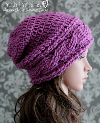 This is a crochet pattern for a gorgeous, elegant hat that has tons texture and interest. It features a horizontal cabled band, and a slouchy style hat. Perfectly suitable for boys, girls, men, and women!