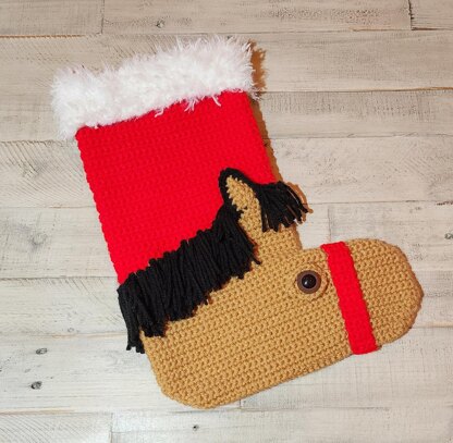 Crochet a special Christmas stocking for the horse lover in your family. This adorable horse Christmas stocking can be customized using the colors of your own horse or the horse you would like to have. Do your kiddos dream of getting a horse for Christmas? This is the stocking for them! This easy crochet pattern uses worsted weight yarn with a size H (5.0 mm) hook. If making for a child under 3 years old, you can embroider on the eyes instead of using plastic eyes.