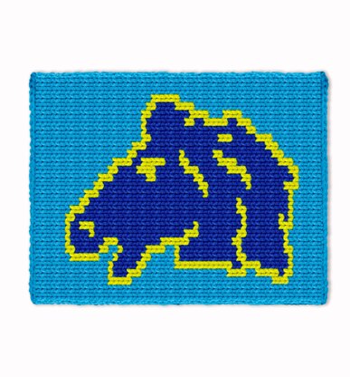 Finger Knitting Pattern PDF – Horse Knit Childs Blanket with Blue and Gold Bronc Head! This cheerful pattern is designed for jumbo or super chunky yarn and is perfect for a soft, playful high school cowboyafghan throw. Worked in stockinette stitch, it adds a bright accent to any nursery or kids’ room. Knit it using the colorwork chart, row-by-row instructions, or easy color blocks — great for beginners and cozy finger knitting! Final size depends on yarn and technique. Approx. sizes:
