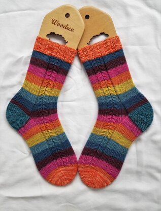These socks were designed to highlight self-striping yarn. The stitch pattern reminded me of all the lovely waterfalls in the area where I live.