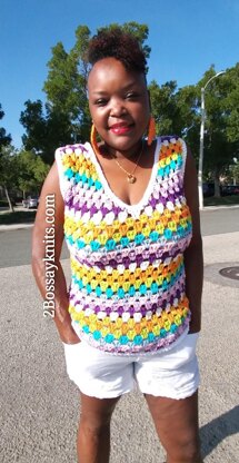 Made with your choice of your favorite cotton yarn, for an airy and light piece, this tank works up in no time flat. The repeat pattern makes this a fun and fast project to make while watching your favorite t.v. show.