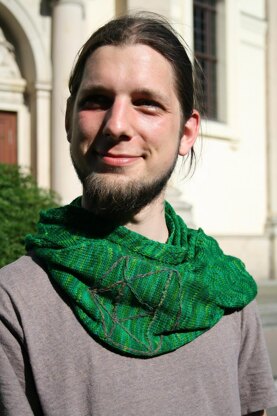 Last year a friend got me into Critical Role, a streamed game of Dungeons and Dragons. One of the catch phrases of the show is „How do you wanna do this?“ whenever a monster is slight. The main die used in DnD is a d20, 20 sided die, and it’s the main feature on this cowl/scarf as well. The d20 is worked up in a mix of cables, intarsia and embroidery. The main pattern is a dragon scale. I liked this pattern long before watching or even playing DnD, but here it’s just perfect. The length of the cowl/scarf can be made to a desired length. The yarn used for the d20 as well as the cowl were crafted while watching Critical Role.