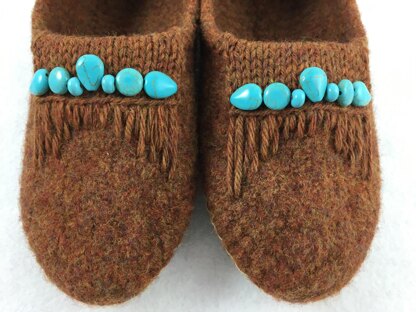 This is a free pattern that will help you create a moccasin look on any pair of my felted slipper patterns, by creating a knitted flap with faux fringe for a moccasin look.