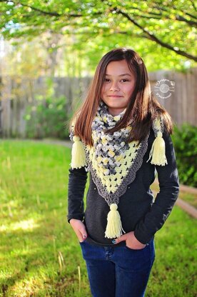 The edge is finished with beautiful shell stitches and tassels are added for a cute addition to the scarf!