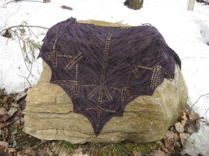 The Hugin & Munin lace shawl is a top-down shawl with large lace feathers, symbolizing the ravens' wings. The pattern is charted.
