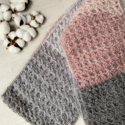 Using one skein of Caron Latte Cakes, create rows of soft and snuggly O’s and X’s in this easy and pretty infinity scarf.