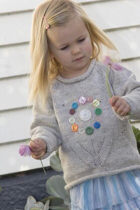 A pretty vintage flower sweater with stem and leaf knitted detail, finished off with an assortment of vintage buttons. With raglan sleeves and a rolled edge.