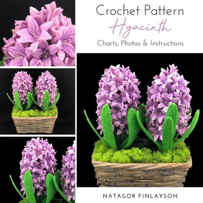 In this Crochet Hyacinth Pattern are instructions, charts, photos, and assembly instructions for a crocheted 3D crochet Hyacinth flower. It contains 36 pages in PDF document format.