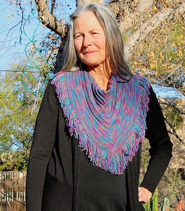 Hyde Park Cowlette has the ease of wearing a cowl but the look of a shawl around your neck. Edged with fringe. Suitable for Fingering or sock weight yarn.