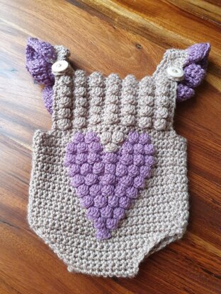 This romper is just gorgeous! It's the perfect addition to your baby's cupboard or to use in a newborn photoshoot! It's designed for baby's comfort, so no itchy yarn and no pointy things! It is also a stunning item to gift at a baby shower! Ease to use for mom is also a big bonus, as the romper features snap-fasteners. So there's no need to undress baby completely, simply to change a diaper.