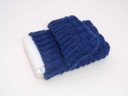 Worked in the round, the cover is formed from two parts, a sleeve and a cap section that holds the gadget neatly inside.