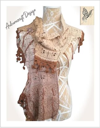 Just doesn’t pay to turn your back on your crochet! I put my Scarf/Wrap down for just a minute and when I turned back Moths had attacked it. The little blighters were all over it. They had devoured huge chunks of it and were hanging from the edges! If you feel the need to own your very own moth-eaten Scarf/Wrap then this is the pattern for you.