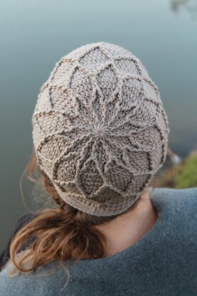 This unique, crochet beanie is worked in joined rounds from the top-down, is made with DK weight yarn, and includes instructions for 5 different sizes (from baby to large adult). Plus, the snowflake design is created using front post stitches, so it can be made with 1 or 2 colors! (See photos for two-toned versions.)