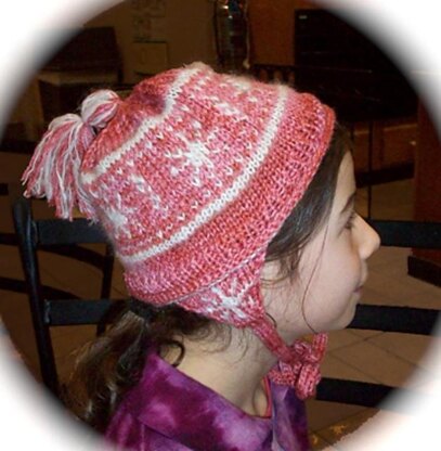Easy no seam hat knit in the round, except for the ear flaps which easily attach early in the first few rounds of the hat.