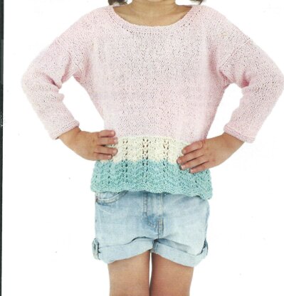 A simple summer sweater made interesting by the coloured bands of lace at the hem
