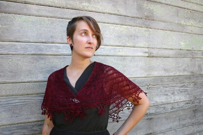 This lovely ¾ circle shawl lays gracefully on the shoulders with no need for a pin to keep it in place. Crocheted from the top down, alternating solid and open rows create a striated fabric, which is finished with an intricate picot edging reminiscent of snowflakes seen under magnification. Stitch patterns are both written and charted, making this a great pattern on which to learn new skills.