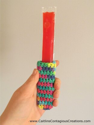 Easy peasy Ice Pop Cozy crochet pattern from Caitlin's Contagious Creations. This beginner friendly crochet design is a for a summer time favorite!
