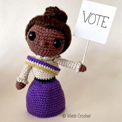 Ida B Wells was a human rights activist and fierce advocate for equality, including the right of women to vote. At a women's suffrage march in 1913, she refused to be segregated, instead, walking in the procession with white suffragists. This pattern, as well as my pattern of Harriet Tubman, has been created to honor those who have fought for human rights and voting rights.
