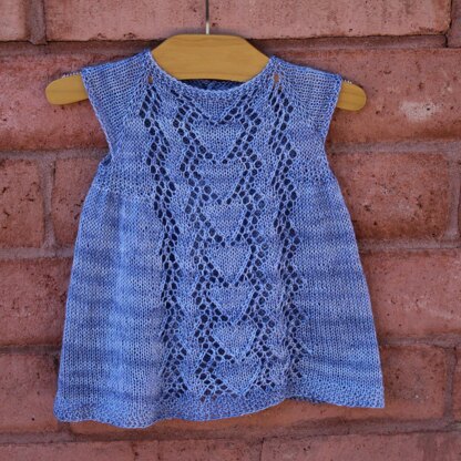 Idara has a vintage feel to it, and will become an heirloom piece to be handed down from baby to baby. Top down construction, buttoned back, with a center lace panel and a full princess skirt. This is designed with positive ease, so there will be lots of room to grow into a tunic.