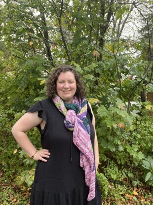 This rectangle shawl, knit on the bias, was inspired by Idlewild, a place in Anne of Green Gables. “We call it Idlewild. Isn’t that a poetical name?” ~ Lucy Maud Montgomery.
