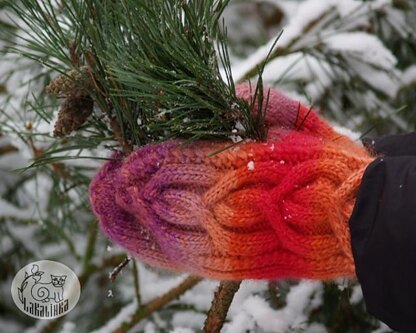 ● women´s mittens with cable pattern and ribbed cuff ● worked in the round ● with thumb gusset ● differnce between pattern for left and right mitten ● knitted with yarn featuring artistic colors which shade easily from one color to the next