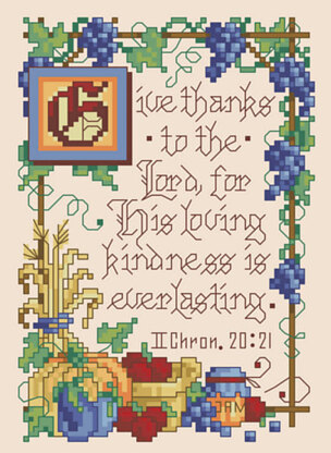 Designed by: Sandy Orton. This scripture excerpt, which speaks of the Lords loving kindness, is depicted in a gorgeous design by Sandy Orton. The border has a bountiful harvest feel of classic illuminated style reminiscent of a storybook design.\n