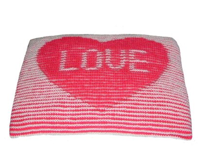 When you look directly at this cushion you see only narrow stripes; when you look from an angle you see the heart and lettering.