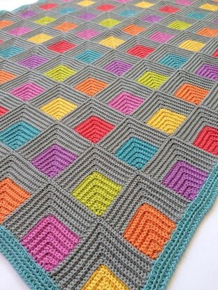 The textured stitches and mitered squares create the illusion of a 3D effect making it visually interesting and very touchable.