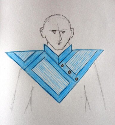 This is a sci-fi inspired poncho in Tunisian crochet. I have put textile interfacing in the collar, so that it will stand straight up.